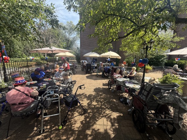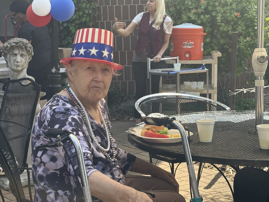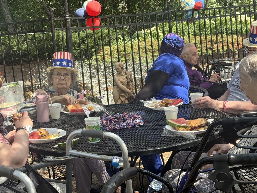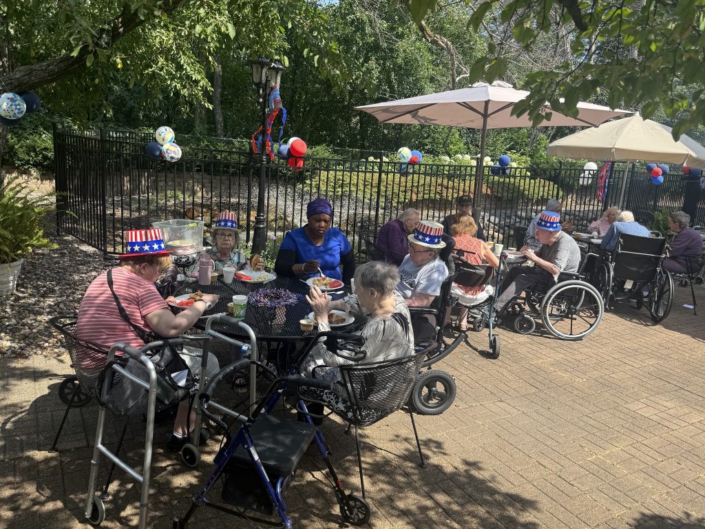 We soaked up the sunshine and surrounded ourselves with summer blooms during a special July barbecue in our beautiful Michelangelo Garden! Our Tiffany memory care residents enjoyed freshly grilled hamburgers, laughter, and some festive red, white, and blue spirit. ![]()
